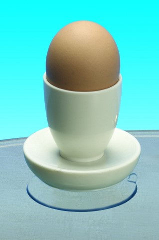 De zuignap houdt de eierdop op zijn plek, ideaal bij eenhandig gebruik.