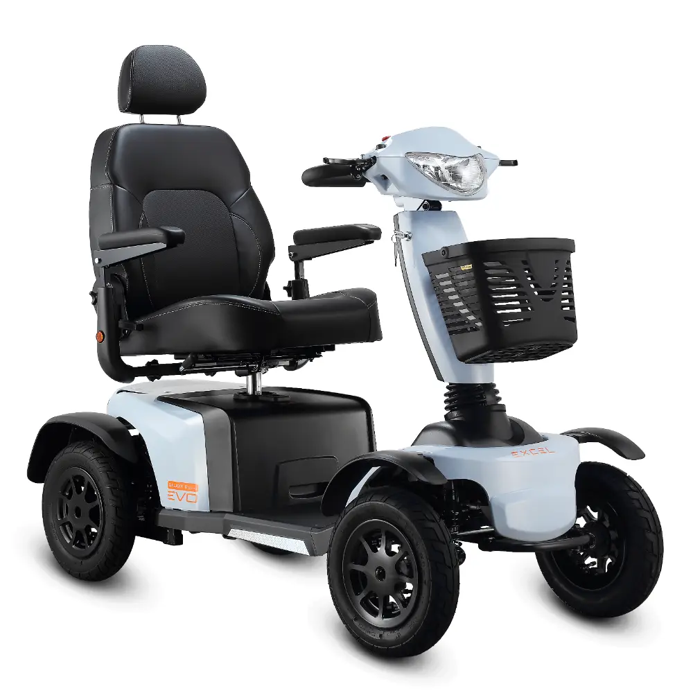 De Galaxy II Deluxe EVO met een topsnelheid van 20 km/u is een veelzijdige en krachtige scootmobiel binnen het EVO-segment. Dankzij de extra grote wielen beschikt dit model over een uitstekende bodemvrijheid, waardoor u comfortabel en stabiel kunt rijden op onverharde paden zoals bospaden en ander ruw terrein. Deze 20 km/u scootmobiel is uitgerust met een krachtige en energiezuinige Li-ion accu, waardoor u probleemloos langere afstanden kunt afleggen. Perfect voor dagelijkse ritten, boodschappen en ontspannen uitstapjes. De verstelbare rugleuning die kan naar individuele wens ingesteld kan worden, een gebruiksvriendelijk en overzichtelijk dashboard met tip-touch bediening, de optie om links/rechts bedienbaar te zijn en een afneembare mand aan de voorzijde.