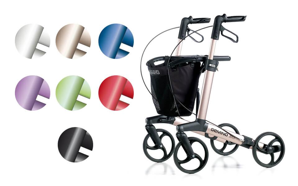 Personaliseren: De GEMINO 30 design rollator is verkrijgbaar in drie framelengtes (30, 30M en 30S) en kan volledige worden aangepast! Kies je favoriete kleur en personaliseer de GEMINO 30 met de voor jou gewenste opties en accessoires. Een bijpassende mand, een praktische krukhouder of een comfortabele steun in de rug? Het kan allemaal. Geniet van het leven met jouw GEMINO 30!