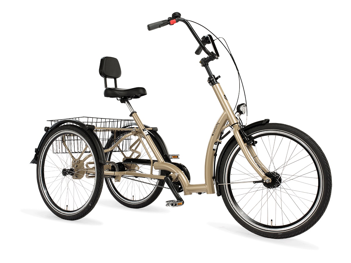 De driewielfiets Comfort is de nieuwste driewieler voor volwassenen, deze Comfort driewieler van Duitse fabrikaat heeft een flexibele, verplaatste achterwaartse zitpositie. De diepe instap en de Pfau-Tec Comfort driewieler hoge, individueel instelbaar stuur zorgen voor een zeer comfortabel gevoel. De driewieler Comfort biedt comfort en veiligheid. De smalle wielbasis zorgt ervoor dat het rijden in bochten heel gemakkelijk en veilig gaat. De extra steun in de rug in de lumbale regio ondersteunen het bovenlichaam en zorgt voor die extra stabiliteit in de bochten. De 7-versnellingsnaaf is eenvoudig te gebruiken en heeft ook een terugtraprem. De Comfort driewieler is ook te leveren met een elektrische aandrijfmotor. Een praktische afsluitbare bagagebox en extra opties maken deze driewieler voor volwassenen een trendy en gewilde fiets.