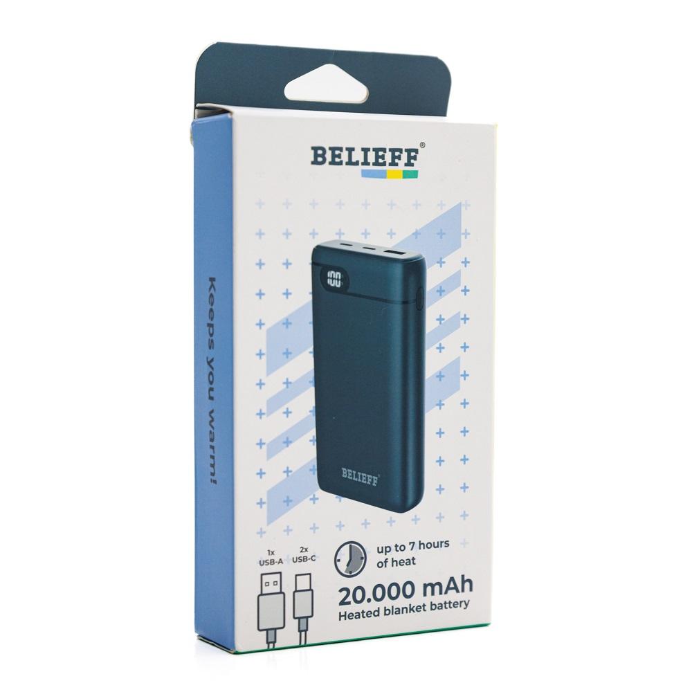 Deze krachtige Powerbank 20.000mAh van Belieff voor verwarmde voetenzak en warmtekussen – Geniet van de warmte, waar je ook bent! Ervaar de luxe van warmte zonder afhankelijk te zijn van een stopcontact, dankzij onze geavanceerde powerbank van Belieff voor verwarmde voetenzakken en warmtekussens. Deze slimme oplossing maakt het mogelijk om je elektrische deken overal mee naartoe te nemen en te gebruiken. Met een capaciteit van 20.000mAh biedt deze powerbank voldoende energie om je verwarmde voetenzak en warmtekussen lange tijd van stroom te voorzien. Ideaal voor reizen, outdoor activiteiten of relaxen thuis op de bank.