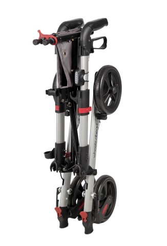 De Track rollator is modern en onderscheidt zich door dat hij dubbel opvouwbaar is tot een handzaam pakketje. Daar door is deze ultra lichtgewicht rollator makkelijk mee te nemen in de auto. Hij is standaard uitgerust met ergonomische hangrepen, boodschappentas, rugband, telefoontasje, dienblad, stokhouder, reflectors rondom, ledverlichting, transsporttas om de rollator in te doen tijdens vervoer. Hij is dus helemaal compleet zonder extra kosten voor bijkomende opties.
