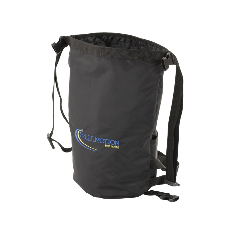 Rolstoel zuurstoftas MultiMotion Handige tas voor een kleine zuurstofcilinder welke achter op een rolstoel geplaatst kan worden. De tas is op alle 4 de hoeken voorzien van een gesp waarmee de tas aan de rolstoel vastgezet kan worden. De achterzijde van de tas welke tegen de zitting van de rolstoel hangt heeft nog een kleine opening waar bijvoorbeeld een zuurstofmasker in geplaatst kan worden wanneer deze niet in gebruik is.