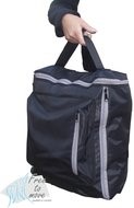 Deze ruime rugleuningtas van Free to move onderscheidt zich van andere tassen door de vele ritsopeningen in de tas waardoor de inhoud van de tas makkelijker is te bereiken met de armen. De tas is gemaakt van zeer stevig nylon waardoor de tas slijtvast is. Door brede stevige banden aan de bovenzijde van de tas kan men de tas goed bevestigen over de rugleuning van de stoel van de scootmobiel, waardoor de tas goed op z’n plek blijft. Aan de voorzijde van de tas bevind zich een handig opbergvak. De tas is ook geschikt voor stoelen met hoofdsteun en stoelen zonder hoofdsteun. Aan de bovenzijde van de tas is tevens een stevig handvat bevestigd waardoor de tas makkelijk is mee te dragen wanneer men een boodschap gaat doen.