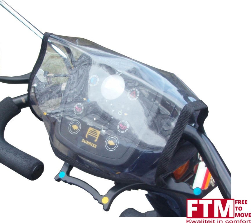 Deze FTM Dashboard regenhoes zorgt er voor dat de elektronica voor het besturen van de scootmobiel beschermt wordt tegen regen en vuil. En past op alle gangbare scootmobiel types.