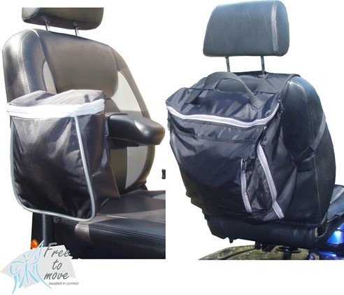 FTM scootmobiel rugleuningtas en de FTM scootmobiel armleuningtas zwart met grijs.
