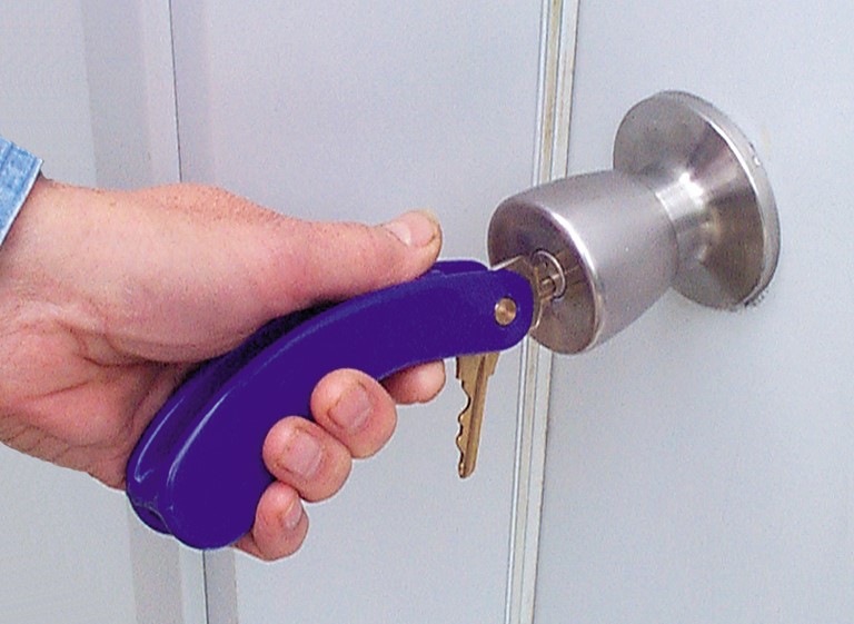 Deze blauwe sleutelhouder van Able2, en is ideaal voor mensen met reuma of een zwakke greep.