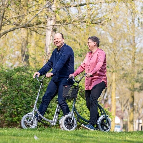 Kenmerken: Lichtlopend • ontlasting gewrichten • langere afstanden afleggen • makkelijk opvouwbaar • licht in gewicht. Standaard voorzieningen Milieuvriendelijke poedercoating • Snelspanner op zadel • Vijf jaar garantie op frame.
