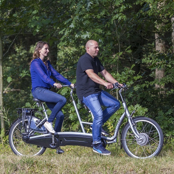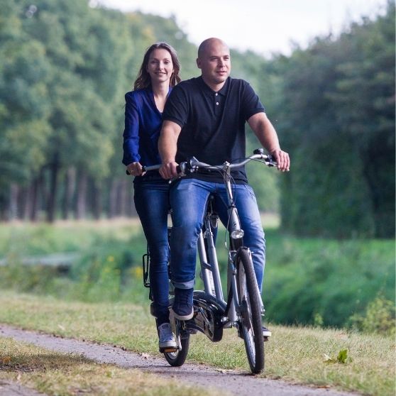 De Twinny tweewieltandem van Van Raam is ideaal om samen te genieten van een fietstocht. Op- en afstappen is gemakkelijk bij de Twinny tandem door de ruime, lage instap. Er is meer ruimte gecreëerd tussen het zadel van de voorste persoon en het stuur van de achterste, zodat u niet te dicht op elkaar zit.