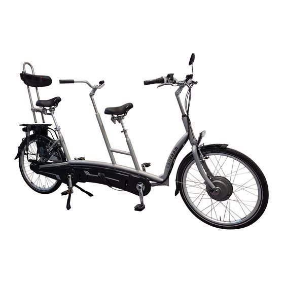 De Twinny tweewieltandem van Van Raam is ideaal om samen te genieten van een fietstocht. Op- en afstappen is gemakkelijk bij de Twinny tandem door de ruime, lage instap. Er is meer ruimte gecreëerd tussen het zadel van de voorste persoon en het stuur van de achterste, zodat u niet te dicht op elkaar zit. U kunt zelf bepalen hoe u samen fietst, zo kunt u met dubbele vrijloop onafhankelijk van elkaar de voeten stilhouden. Met schakelbare vrijloop kunt u kiezen of u beide in eigen tempo of in gelijk tempo fietst. Tevens kunt u optioneel de besturing ook aan de achterzijde laten monteren. Omdat wij elke fiets uniek produceren kunt u de framehoogte voor en achter naar eigen wens laten aanpassen. De Twinny tandem is ook deelbaar leverbaar waardoor u deze ook achter op de auto kunt vervoeren. Met een elektromotor heeft u een comfortabele trapondersteuning die het fietsen op deze tandem nog veel makkelijker maakt. Lees alles over elektrische trapondersteuning voor deze fiets. Onder andere geschikt voor: Mensen die moeilijk zelfstandig aan het verkeer kunnen deelnemen, beide geen evenwichtproblemen hebben en beweging en sociaal contact belangrijk vinden.